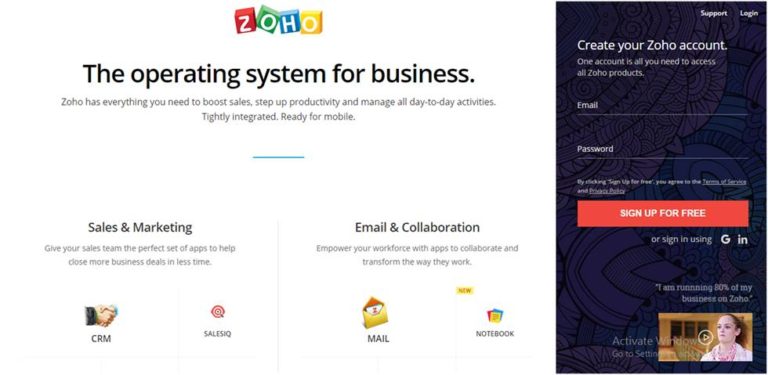 Zoho is the best operating system for your business. It offers you a wide range of applications that will help you in your business operations. Whether it’s Sales & Marketing, Email & Collaboration, Business Process, Finances, Invoicing, IT & Help Desk, Customer Support, Human Resources and much more, Zoho offers a 360 degree set of tools for your business. The benefit of sticking only to Zoho is that you can easily manage each of your app through the same account.
